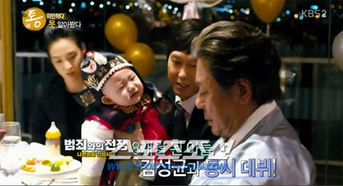 방송 직후 영화 '범죄와의 전쟁'에 출연한 김성균 아들의 모습에 관심이 집중됐다. 김성균의 아들은 생후 8개월 당시 최민식의 손자 역으로 돌잔치 장면에 등장해 눈길을 끌었다. 영화 엔딩 부분에서 한복을 곱게 차려 입은 채 최민식의 품에 안겨 깜찍한 모습을 선보였다.