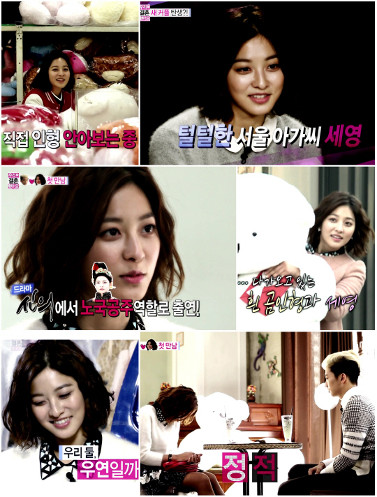 11일 방송된 MBC '우리 결혼했어요'에 2PM 장우영과 함께 새 커플로 첫 출연한 박세영이 여성스러운 외모와는 또 다른 솔직하고 털털한 모습을 드러내며 의외의 실제성격으로 눈길을 모았다. 박세영은 그동안 드라마 '신의'의 노국공주, '학교 2013' 송하경 등 차가운 냉미녀 역할을 주로 선보였던 것과 달리 밝은 미소와 귀여움 섞인 털털한 매력으로 반전 매력을 뽐냈다.