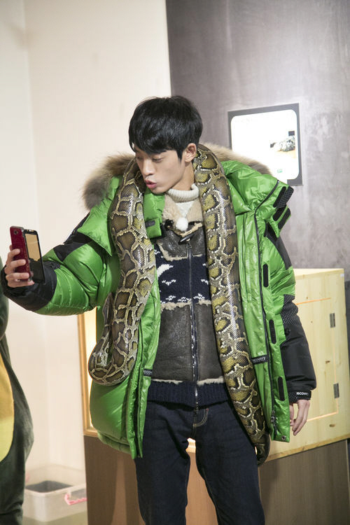 사진 속 정준영은 커다란 뱀을 몸에 두르고도 여유 만만한 모습으로 뱀을 달래며 마치 함께 사진을 찍자고 하는 듯한 모습이어서 눈길을 사로잡고 있다.
