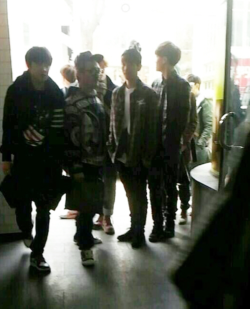 사진에는 엑소 멤버 중 일부가 한 건물에 들어서는 모습이 담겨 있다.
