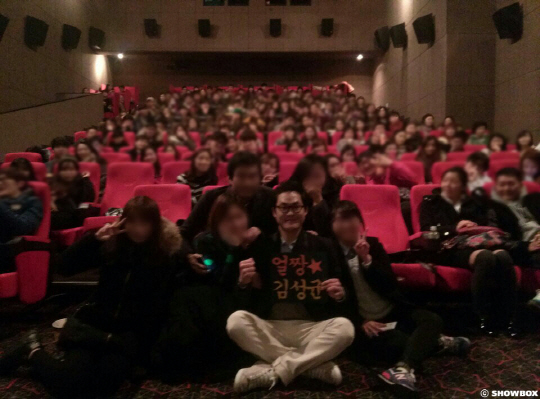 김성균은 지난 12일 강남 지역 극장에서 관객들을 위한 깜짝 게릴라 무대인사를 진행했다.