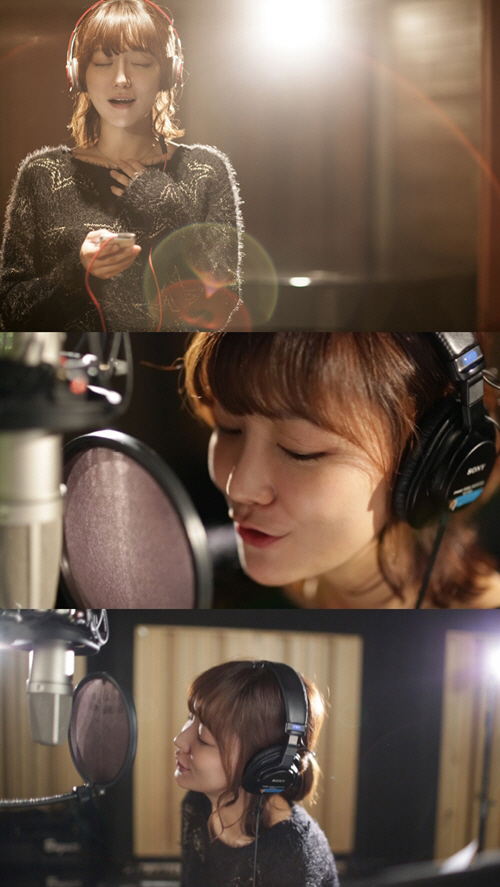 사진 속 신소율은 헤드폰을 끼고 녹음에 열중하는 모습. 감정을 잡기 위해 두 눈을 꼭 감고 집중하는 진지한 모습이 시선을 모은다.