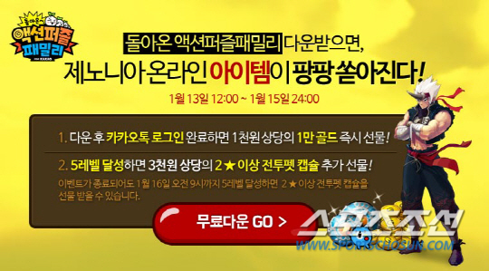 이미 양 사는 '골프스타', '스피릿스톤즈' 등 다수의 인기게임들을 통한 공동 프로모션 진행으로 긍정적인 시너지 효과를 얻고 있으며, '제노니아 온라인'의 경우에도 이미 지난주 '돌아온 액션퍼즐패밀리'를 통한 공동 프로모션으로 좋은 성과를 올린 바 있다고 회사측은 밝혔다.