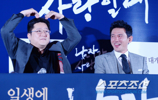 '곽도원 열애 고백', 13일 서울 성동구 왕십리 CGV에서 진행된 영화 '남자가 사랑할 때' 기자간담회에서 배우 곽도원(왼쪽)이 일반인 여자친구와 열애 중임을 고백했다.