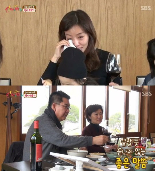 이에 이은은 폭풍 눈물을 흘리며 그간 힘들었던 속내를 털어놨다. 이은은 "세 아이 아토피가 심했다. 일반인의 30배가 넘는 수치였다"고 말하며 남모를 육아 고충을 털어놓은 뒤 "누구보다 시아버지가 내 마음을 알고 계셨구나하는 생각에 눈물이 났다"고 눈물을 흘린 이유에 대해 설명했다.