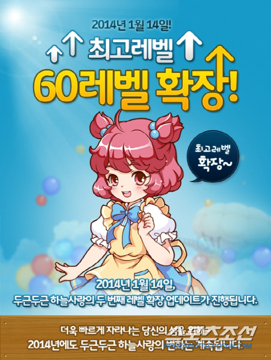 조이시티는 모바일 소셜네트워크게임(SNG) '두근두근 하늘사랑 for Kakao'의 최고 레벨을 기존 50레벨에서 60레벨로 상향 조정하는 업데이트를 14일 실시했다.
