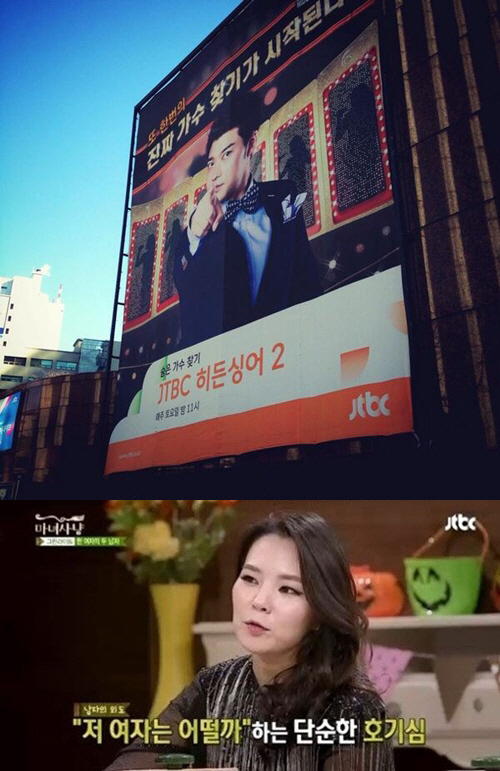곽정은이 게재한 사진은 JTBC 인기 예능 프로그램 '히든싱어2'의 홍보 현수막으로 MC 전현무의 얼굴이 크게 담겨 있다.