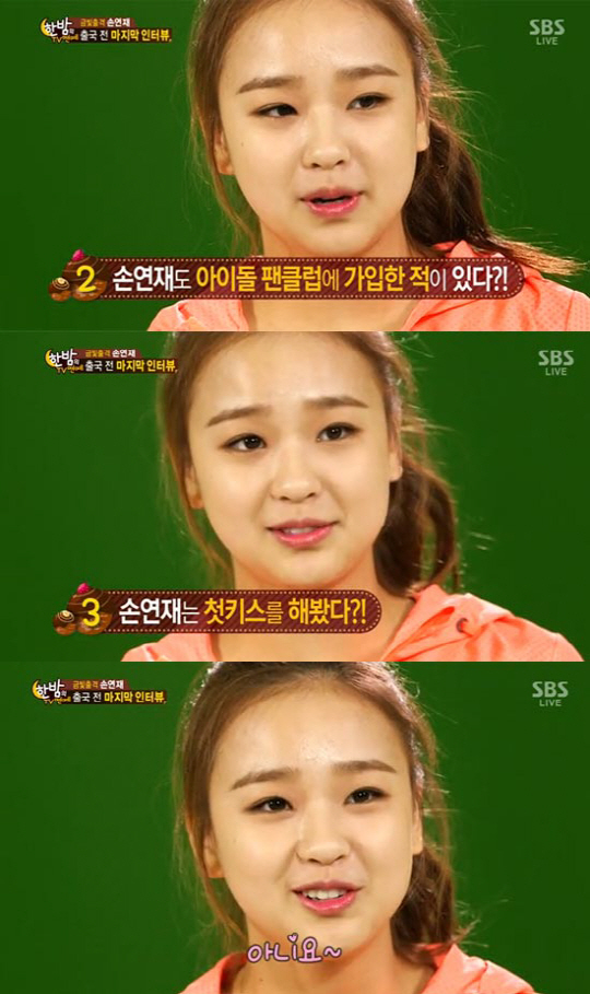 또 손연재는 첫 키스를 해 봤냐는 질문에 "이게 뭐야. 고백도 못 받아 봤는데"라며 "아니요. 그냥 다른 질문할게요"라며 시무룩한 표정을 지어 웃음을 안겼다.