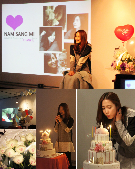 지난 11일 혜화동의 한 카페에서 데뷔 11주년을 기념해 팬들과 깜짝 축하 파티를 연 것. '데뷔 11주년 남상미 THANK YOU' 파티'라는 타이틀로 진행된 팬미팅은 2003년 드라마 '러브레터'를 통해 연기자로 첫 발을 내디딘 남상미의 데뷔 11주년을 축하하며 연기자 남상미를 한 마음으로 응원해 온 소중한 팬들과 남상미가 서로에게 축하와 감사의 마음을 전하는 시간으로 꾸며졌다.