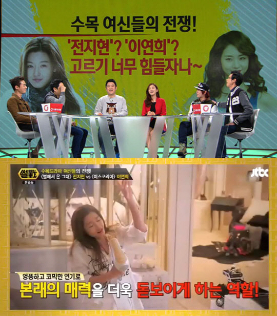 16일 방송된 JTBC '썰전' 47회에서는 최근 연기변신에 성공한 두 여배우 MBC '미스코리아'의 이연희와 SBS '별에서 온 그대'의 전지현의 매력을 전격 비교분석하는 시간을 가졌다.