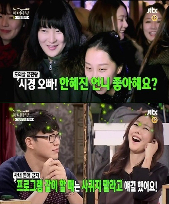 17일 방송된 JTBC '마녀사냥'에서 성시경은 이태원 길거리 생중계를 하는 중 여성 시민들에게 "혹시 한혜진 언니 좋아하냐"는 돌발 질문을 받았다.