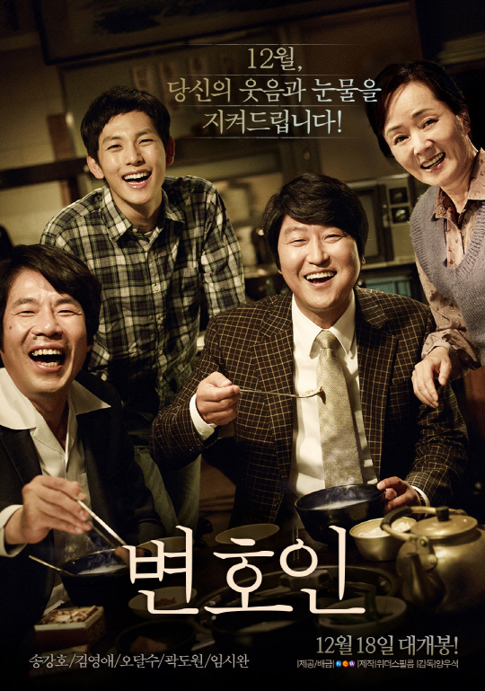 영화 '변호인' 돈 없고, 빽 없고, 가방끈 짧은 속물 세무 변호사가 돈이 아닌 사람을 변호하며 변화해가는 모습을 생애 최고의 연기력으로 표현해낸 송강호의 열연, 그리고 오달수, 김영애, 곽도원, 임시완, 조민기 등의 완벽한 연기로 호평 받았다.