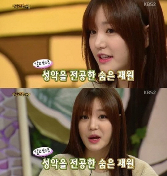 이날 방송에서 이유비는 "성악을 전공했다"고 밝히며 오페라 '피가로의 결혼' 중 한 소절을 불렀다. 특히 그녀는 가녀린 외모에 청아한 목소리로 성악 실력까지 뽐내며 시청자들의 눈길을 확 사로잡았다. 이유비는 실제 이화여대 성악과를 졸업한 재원.