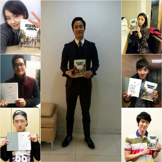 사인과 함께 보내온 인증샷도 눈길을 끌었다. 고아라는 책을 들고 '브이' 포즈를 취했고 정우는 말끔한 수트 차림으로 반전 매력을 드러냈다. 유연석은 반팔 셔츠를 입고 근육질 몸매를 드러냈다.
