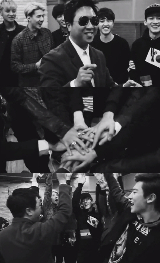 EXO는 바쁜 스케줄 속에서도 재즈 보컬리스트로 변신한 이동우의 첫 정규 앨범 (LEE DONG WOO SMILE TURNING TO JAZZ) 타이틀곡 '플라이 위드 유(Fly With You)' 녹음실에 깜짝 방문해 선후배간의 의리를 과시했다.