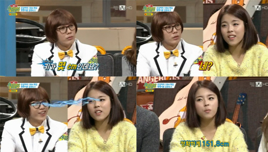 이때 미르는 타이니지 도희를 향해 "키가 몇 인데요?"라며 돌직구 질문을 던졌고, 갑작스런 질문에 당황한 도희는 "네?"라고 되물으며 미르를 노려봤다.