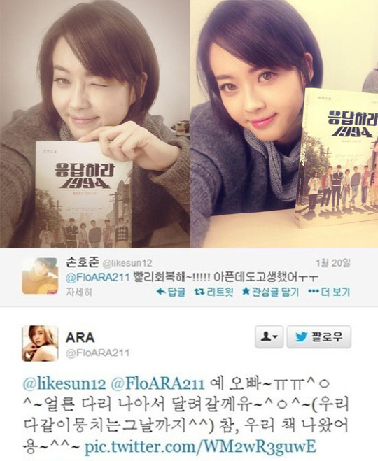 'SM3대미녀' 배우 고아라가 '응답하라 1994' 책 출간 소식을 알리며 배우 손호주과 훈훈한 메시지를 전했다.