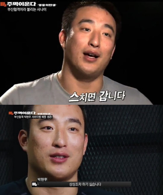 이날 "스치면 갑니다"라는 근자감(근거 없는 자신감) 멘트로 화제를 모은 부산 협객 박현우는 목포 자존심 최부용과 맞대결을 펼쳤다.