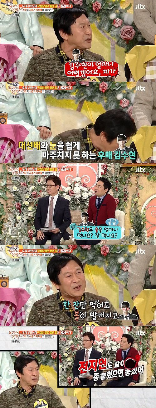 이에 MC 강용석은 "김수현은 술을 잘 마시냐"고 물었고, 김응수는 "한 잔만 마셔도 볼이 빨개진다. 그런데도 잘 마신다"고 답했다.