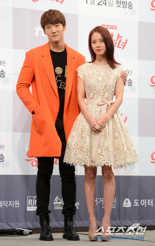 21일 오전 서울 논현동 임페리얼팰리스 호텔에서 tvN 드라마 '응급남녀' 제작발표회가 열렸다. 송지효와 최진혁이 포토타임에서 포즈를 취하고 있다. '응급남녀'는 6년 전에 이혼했던 원수 같은 부부 오진희(송지효), 오창민(최진혁)이 병원응급실에서 늦깎이 인턴으로 다시 만나 펼치는 로맨틱 코미디 드라마로 오는 24일 첫 방송된다. 김보라 기자 boradori@sportschosun.com /2014.01.21/ |