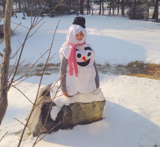 공개된 사진에는 사유리가 눈사람 옷을 입고 눈사람으로 변신, 얼핏 보기에는 진짜 눈사람인 것처럼 보인다.