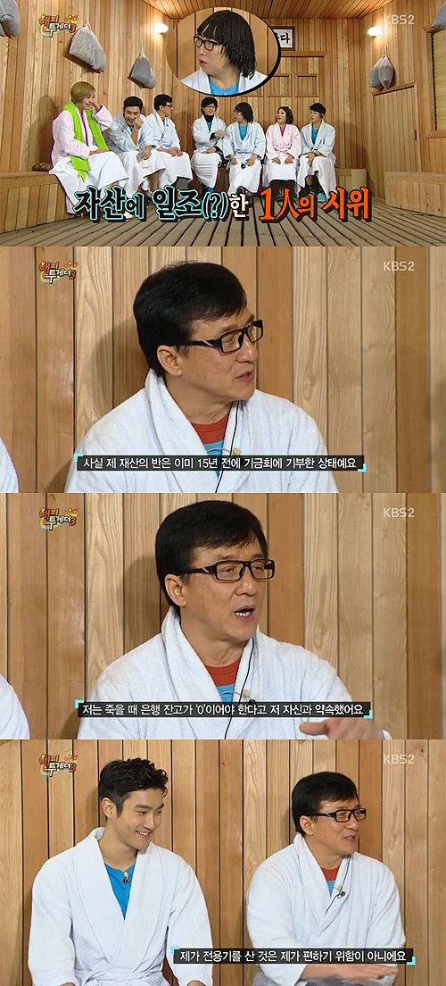 또 성룡은 "전용기를 산 것은 내가 편하기 위함이 아니다. 시간을 절약해 더 많은 돈을 벌고 더 많은 돈을 기부하기 위해서다"라고 말해 박수를 받았다.