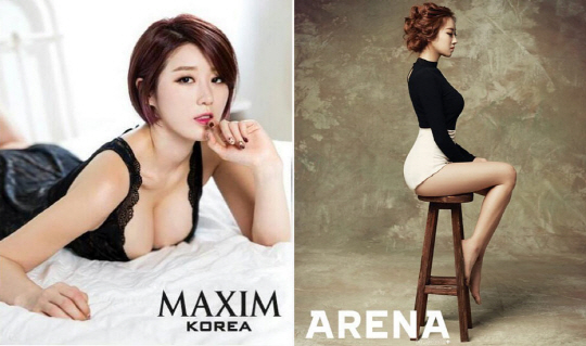 최근 한 온라인 커뮤니티 게시판에는 "'맥심' 나비 vs '아레나' 경리 2월호 몸매 대결"이라는 글과 함께 두 사람의 사진이 비교돼 올라왔다.