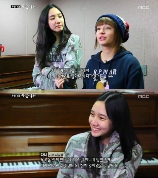 25일 방송된 MBC 휴먼다큐 '사람이 좋다'에서 티아라엔포 멤버 다니는 같은 소속사 식구인 샤넌과 남다른 친분을 드러냈다.
