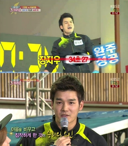 하지만 장지우의 성공 이후 개그맨 이상호와 머슬킹 팀 백승곤이 성공하며 3위에 밀려나자 긴장감을 안기며 마지막 레이스에 도전했다.