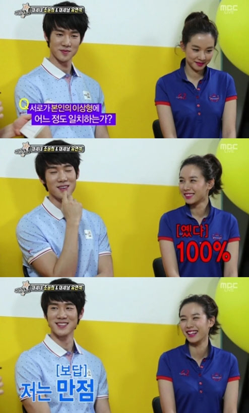 이어 두 사람은 "서로 이상형에 얼마나 일치하는가"라는 리포터 맹승지의 질문에 "100% 만족"이라고 답했고 유연석 역시 "나도 만점이다"라고 밝혀 눈길을 끌었다.