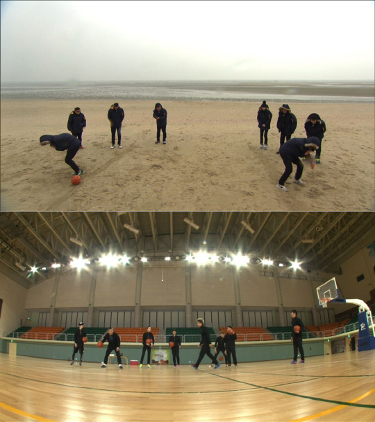 멤버들은 두 사람이 짝을 이뤄 코끼리코 15바퀴를 돈 후 인간골대에 골을 넣는 '한마음 덩크슛'을 시작으로 겨울바다 입수 뺨치는 '바닷물 세수', 딱밤 내기 '자유투 대결' 등 가지각색 훈련을 제안하며 전의를 다졌다.