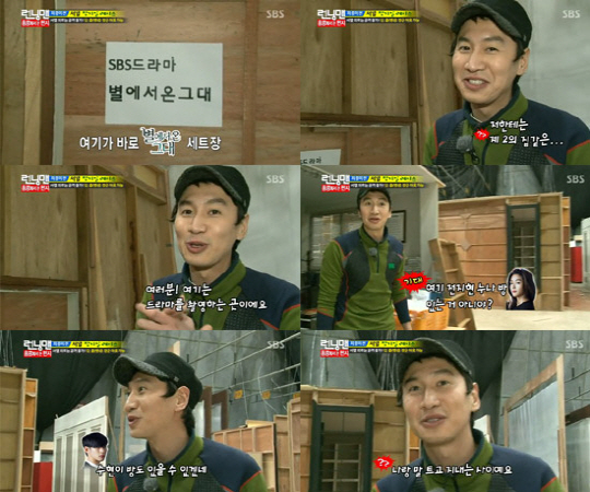 이광수는 지난 26일 방송된 SBS '일요일이 좋다-런닝맨'에서 SBS 수목드라마 '별에서 온 그대(이하 '별그대')' 세트장을 방문했다.
