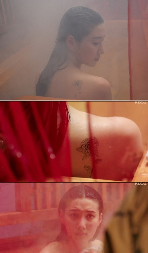 배우 주다영이 등쪽 은밀한 부위에 국화 문신으로 성숙미를 자랑했다.