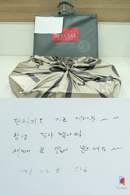 김성균이 직접 친필로 쓴 손 편지에는 "판타지오 가족 여러분~^^ 항상 감사합니다. 새해 복 많이 받으세요~"라고 적혀 있어 소속사 식구들을 챙기는 자상하고 세심한 면모가 돋보인다.