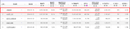 역대 애니메이션 사상 최단기간인 동시에 2014년 첫 436만 돌파라는 기록을 세운 것.