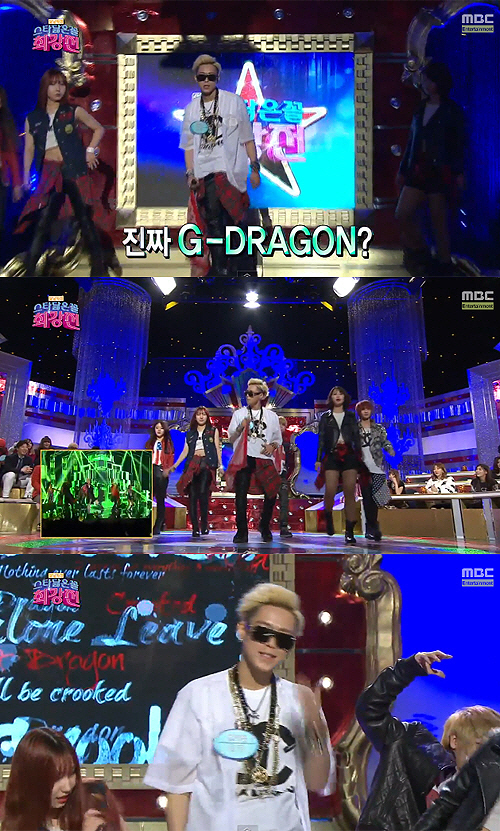 특히 현재 가수를 준비 중이라는 '연희동 지드래곤'은 지드래곤의 '삐딱하게' 무대를 선보이던 중 지드래곤과 똑같은 헤어스타일과 표정, 포즈를 완벽하게 소화하며 심사위원석에 있던 여자 스타들의 환호를 받았다.