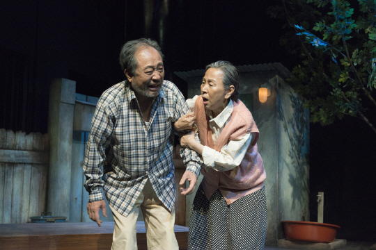 지난해 초연 당시 신구는 거친 호흡과 손끝의 떨림, 내뱉는 숨소리와 함께 전하는 말, 그리고 촉촉히 젖어 있는 흐린 초점의 눈을 통해 간암 말기 환자를 사실감 넘치게 표현해 '대체불가능한 배우'라는 찬사를 받았다. 부인 홍매 역을 맡은 손숙 역시 감정선을 쥐락펴락하는 노련한 연기로 배우 인생 50년의 내공을 과시했다. 오는 3월 2일부터 3월 30일까지 국립극장 달오름극장. 제작 신시컴퍼니.