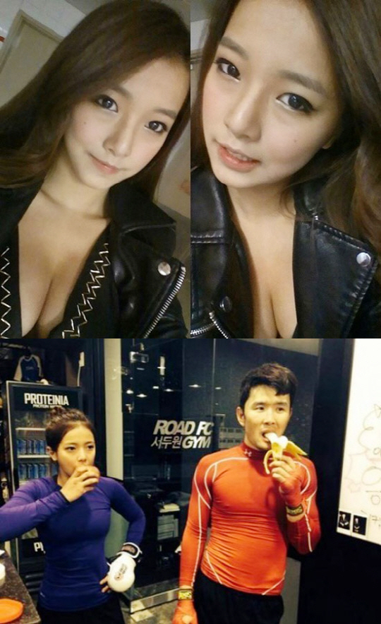 공개된 사진 속 송가연은 바나나를 먹고 있는 윤형빈 옆에서 타이트한 운동복을 착용하며 글래머러스한 몸매를 과시, 보는 이들의 눈길을 확 사로잡는다.