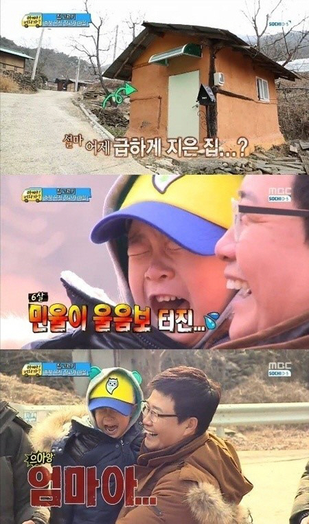 그러나 숙소 추첨 결과 가장 허름한 집에 김성주·민율 부자가 뽑혔고, 결국 김민율은 김성주의 품에 안겨 폭풍눈물을 터뜨려 웃음을 자아냈다.