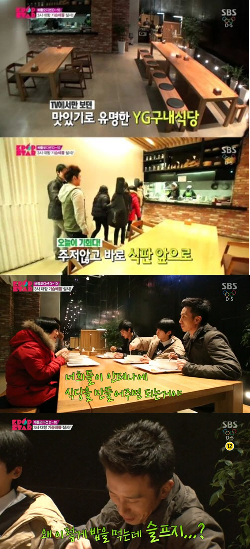 유희열과 참가자들은 YG사옥을 둘러보며 "확실히 YG가 좋긴 좋다"고 감탄을 이어가던 중 YG 구내식당을 발견한 유희열은 "여기가 그 유명한 YG 구내식당인가 보다. 나도 TV에서만 봤다"고 말했다.