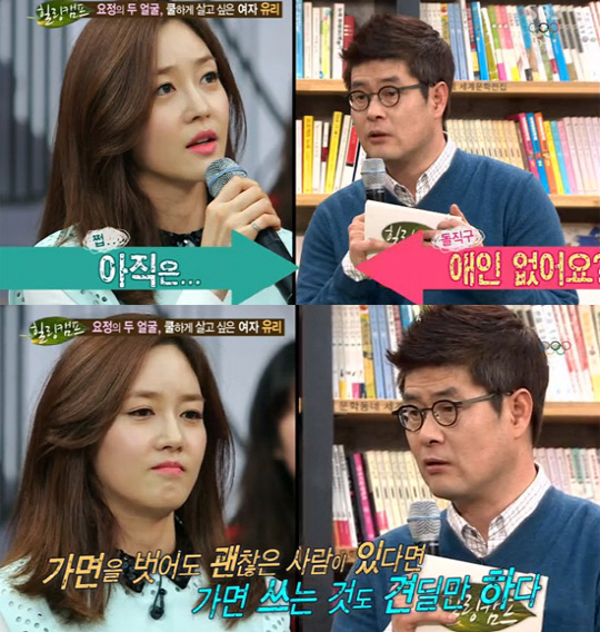 이에 강신주는 성유리에 "애인이 없냐?"고 돌직구를 던지며 "낮에는 쿨한 가면을 쓰기 때문이다. 성인이 아닌 이상 맨얼굴로 사는 사람은 거의 없다. 연인이 있다면 그 사람에게만큼은 가면을 벗을 수 있다. 가면을 벗어도 괜찮은 사람이 있다면 가면 쓰는 것도 견딜 만하다. 하지만 혼자라면 나 홀로 가면의 무게를 견뎌야 한다"고 조언했다.