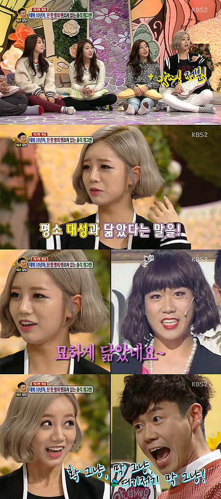 이날 걸스데이 혜리는 스튜디오에 등장한 김대성을 보고 깜짝 놀란 표정을 지었다. 이어 혜리는 "김대성이 여장했을 때 닮았다는 말을 엄청 많이 들었다"고 밝혔다.