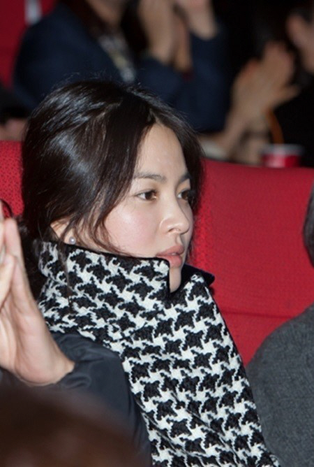 오랜만에 모습을 드러낸 송혜교는 변함없는 청순한 미모를 자랑해 시선을 모았다. 코트 차림에 핑크빛 메이크업을 한 송혜교는 수수한 차림에도 우아한 매력이 빛났다.
