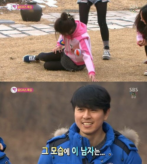 이날 여자 5호는 게임 중 넘어지면서 치마가 살짝 올라가고 말았다. 이 모습에 남자 6호가 호감을 보인 것.