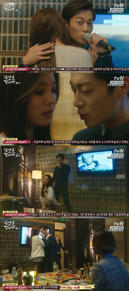 6일 오후 방송된 tvN 목요드라마 '식샤를 합시다' 11회에서는 구대영(윤두준 분)과 윤진이(윤소희 분)가 김학문(심형탁 분) 변호사 사무실 식구들과 함께 회식 후 노래방을 찾았다.
