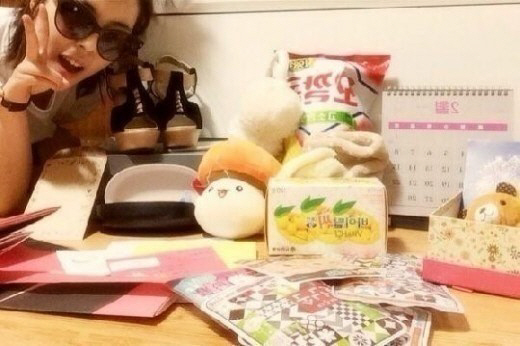 사진 속 도희는 선글라스를 쓴 채 팬들이 보내준 선물 앞에서 깜찍한 브이 포즈를 취하고 있다. 도희 옆에는 비타민, 인형, 구두, 과자 등 다양한 종류의 선물이 진열돼 있어 시선을 모은다.