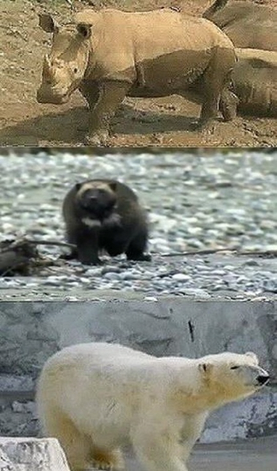 게시물에 따르면 코뿔소, 울버린, 북극곰 등이 평소에는 온순하다가도 화나면 무서운 동물들인 것으로 적혀있다.