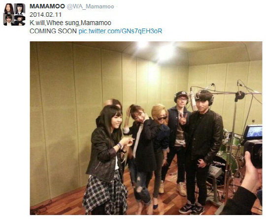 이 사진은 마마무 측 공식 SNS에 '2014.02.11 K.will, Whee sung, Mamamoo COMING SOON!'이라는 글과 함께 게시되었다.