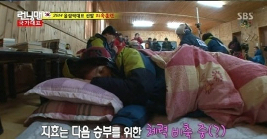 이에 '런닝맨 팀'은 휴식 공간에서 서로 이야기를 나누며 즐거운 시간을 보내는 반면, 송지효는 방 한 쪽에 누워 이불을 덮고 낮잠에 빠져 있는 모습이 포착됐다.