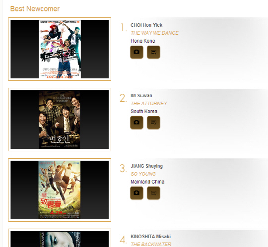 임시완은 이 시상식에서 홍콩의 최혼익(THE WAY WE DANCE), 중국의 장수잉(SO YOUNG), 일본의 기노시타 미사키(The BackWater), 니노미야 케이타(Like Father, Like Son) 등의 배우들과 함께 후보에 올랐다.